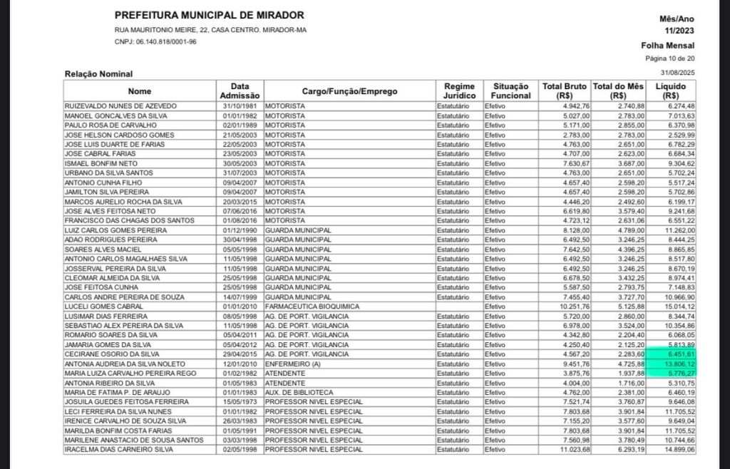 A situação levanta suspeitas de funcionária “fantasma”, termo usado para designar quem recebe salário público sem trabalhar efetivamente. Documentos obtidos junto à prefeitura confirmam que Audreia continua supostamente recebendo regularmente, o que pode configurar improbidade administrativa e gerar sérias consequências legais.