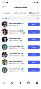 Elaine Carneiro é seguidora assídua da extrema direita, inclusive segue todos os perfis do deputado que representa essa ala, o deputado federal Nikolas Ferreira, incluindo as fanpages, veja :